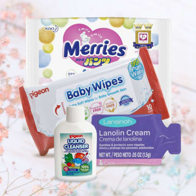 3- Por compras sobre $30.000 tanto online como físicas recibe de regalo una muestra de pañales Merries, de toallitas Pigeon y de la crema de lanolina Lansinoh.